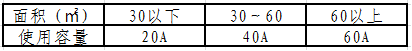 4.提供单相220V电源,使用容量说明如图: