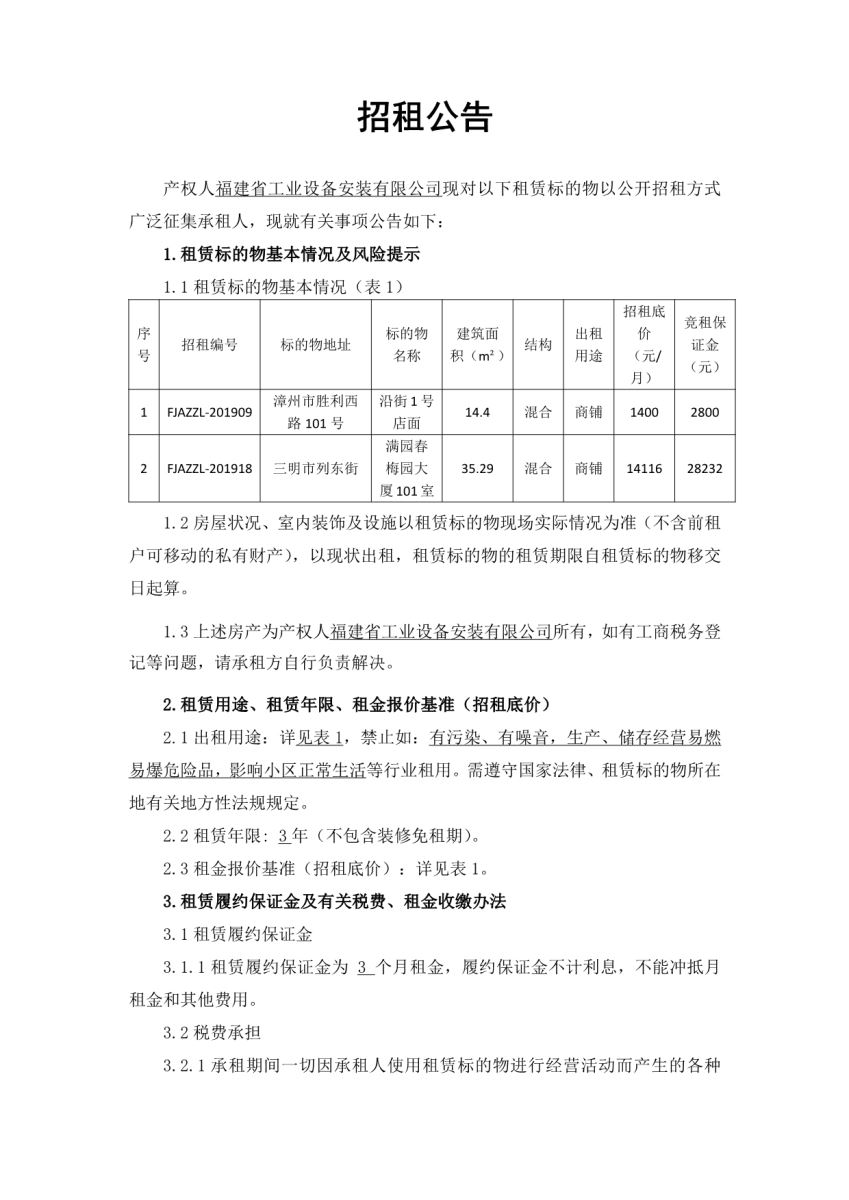 名称 | 漳州市胜利西路101号店面及三明市列东街店面招租公示 |