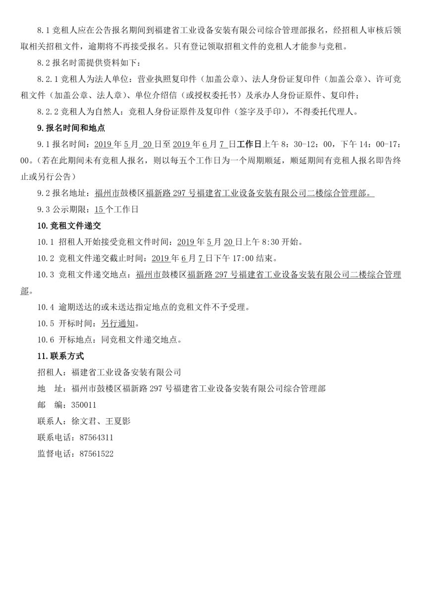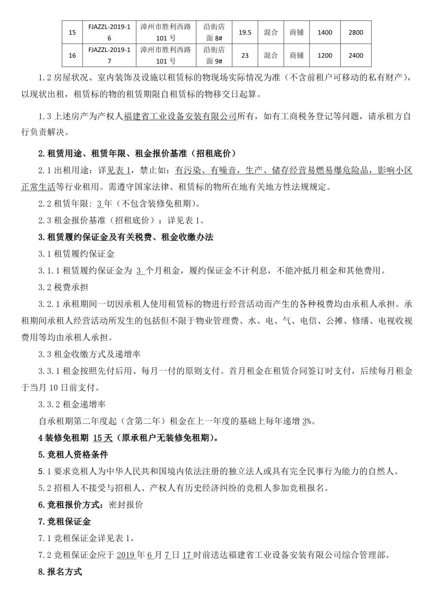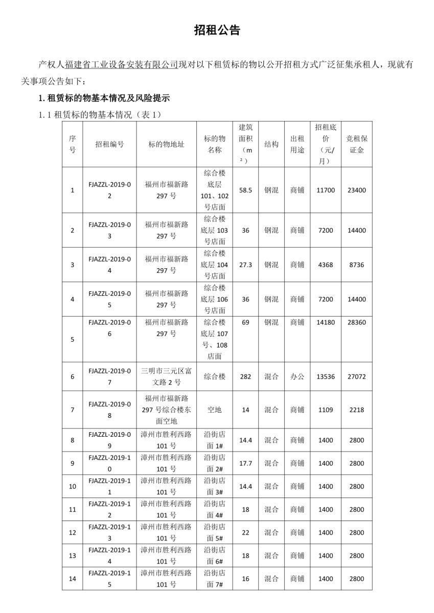 名称 | 福建省工业设备安装有限公司位于福州、三明、漳州三地市资产公开招租亚娱体育app官网 |