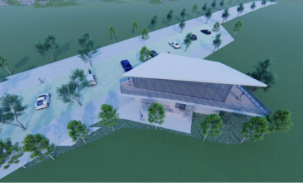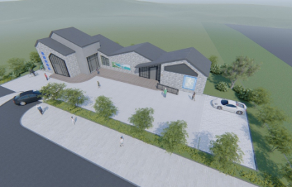 澳前驿站位于东澳镇澳前路玉井公园东侧,驿站总用地1129.17平方米,设计总建筑面积298.78平方米,净使用面积为243.58平方米,停车场面积300平方米,景区与交通干线的连接道路约1000米,旅游厕所约40平方米。澳前驿站集驿站、观景台、厕所、形象宣传等功能为一体,能同时满足停车、新能源汽车充电桩、旅游咨询、观光等需求。在外立面设计上,采取砖红色和黄色的色彩搭配,与澳前的建筑风格以及环境风貌相统一。不同于其他驿站,澳前驿站在二楼区域专门规划了两间客房,以便于游客休憩。