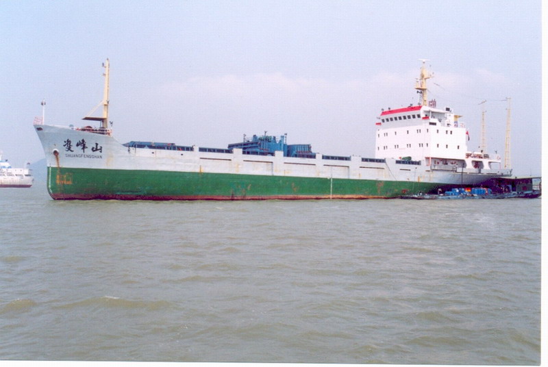 “双峰山”轮。国籍:中国;船型:一般干货船;建造地点:武昌;建造时间 :1991年12月;总吨/净吨:2309T/1263T;载重吨:3297T ;型长/型宽/型深: