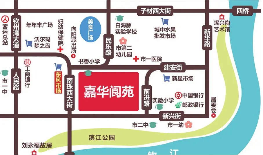 教育优质:周边有多所优质学校,包括钦州市第二中学、钦州市实验小学、钦州市书香小学、钦州市第一幼儿园、钦州市城西幼儿园等,教育资源丰富,适合有孩子的家庭。