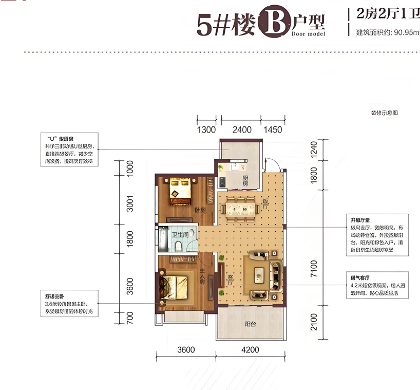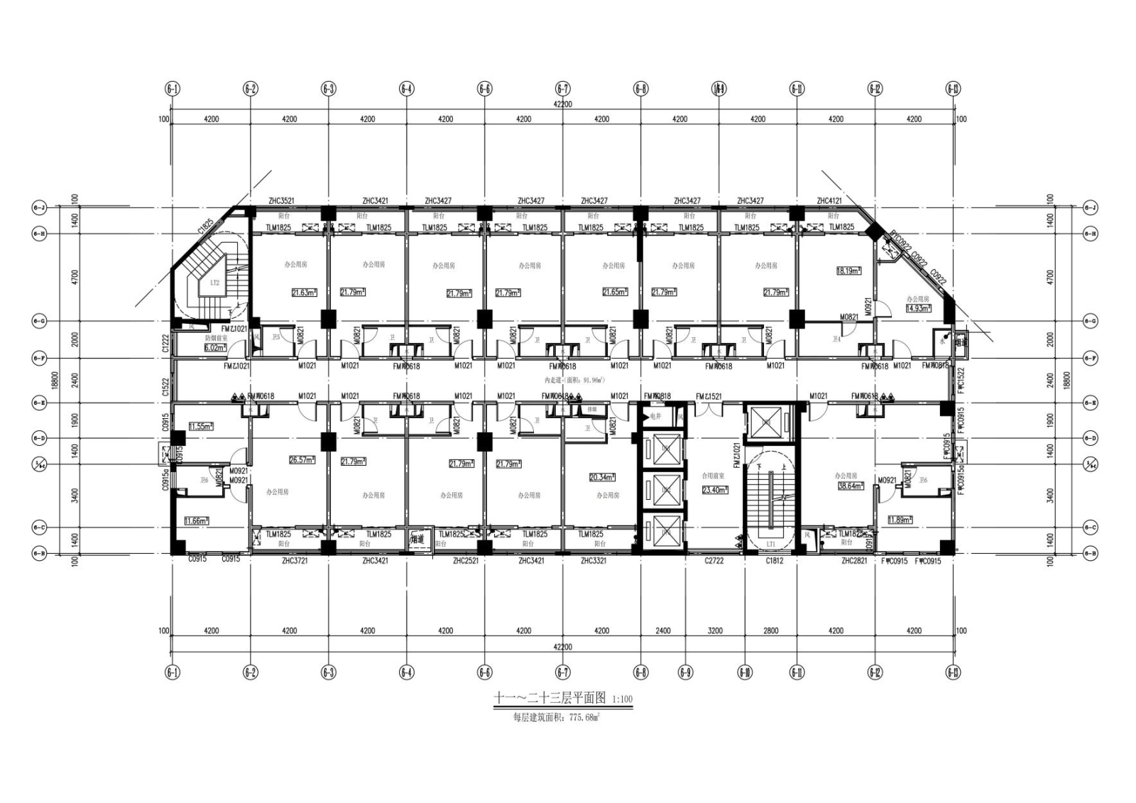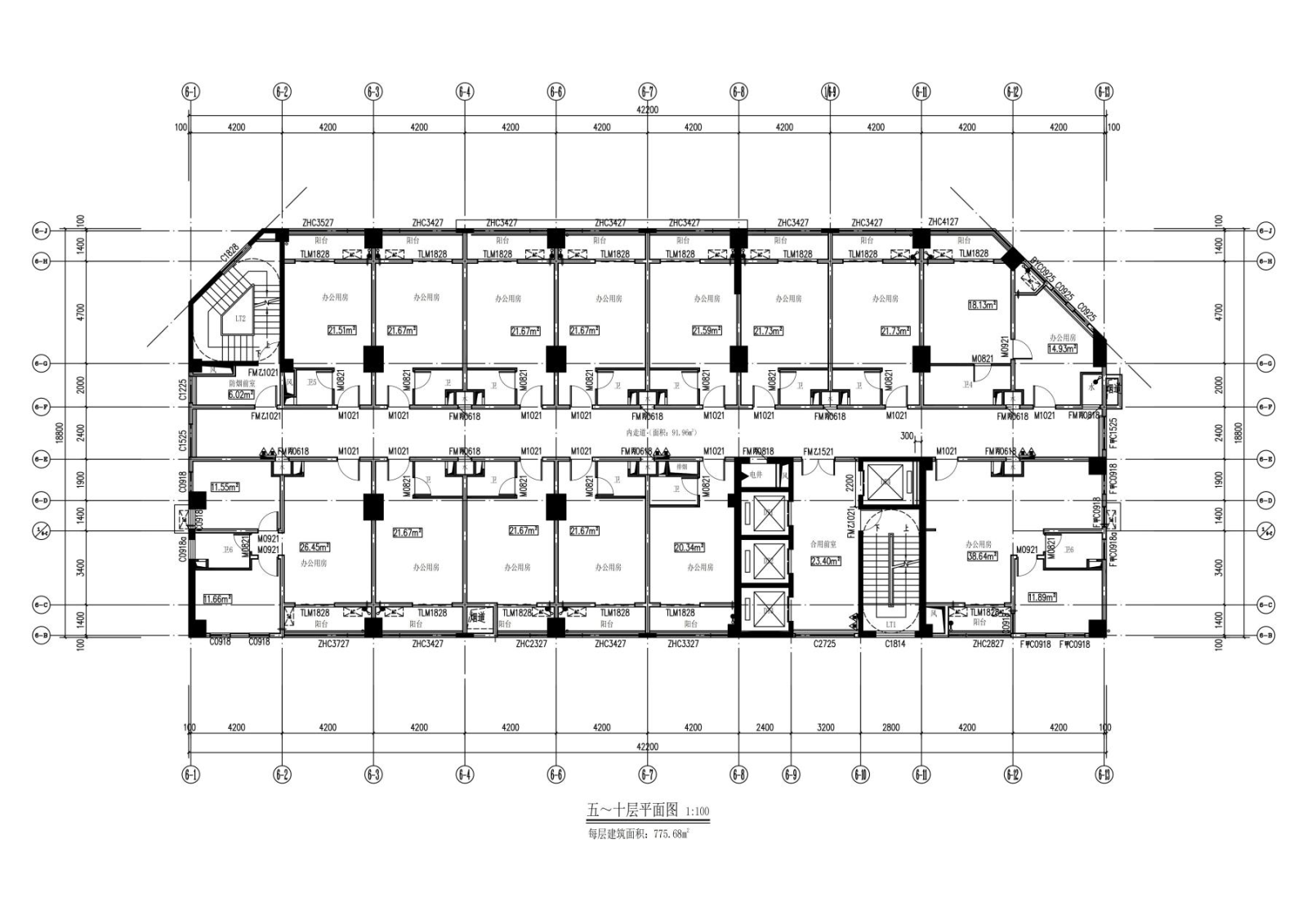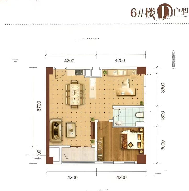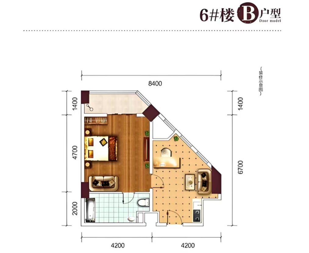 3.公寓部分:6号楼单套房建筑面积在45.28-95.06㎡之间,共有4个户型,可用于办公,目前尚未交付使用。公寓楼层平面图及户型图如下: