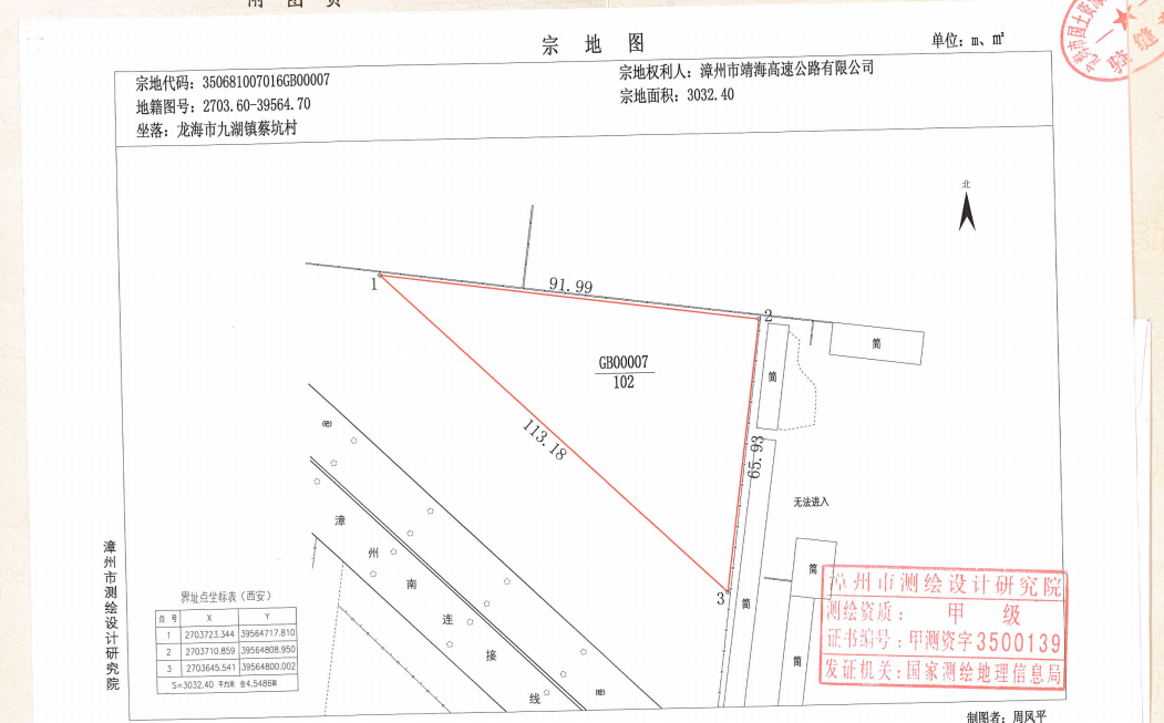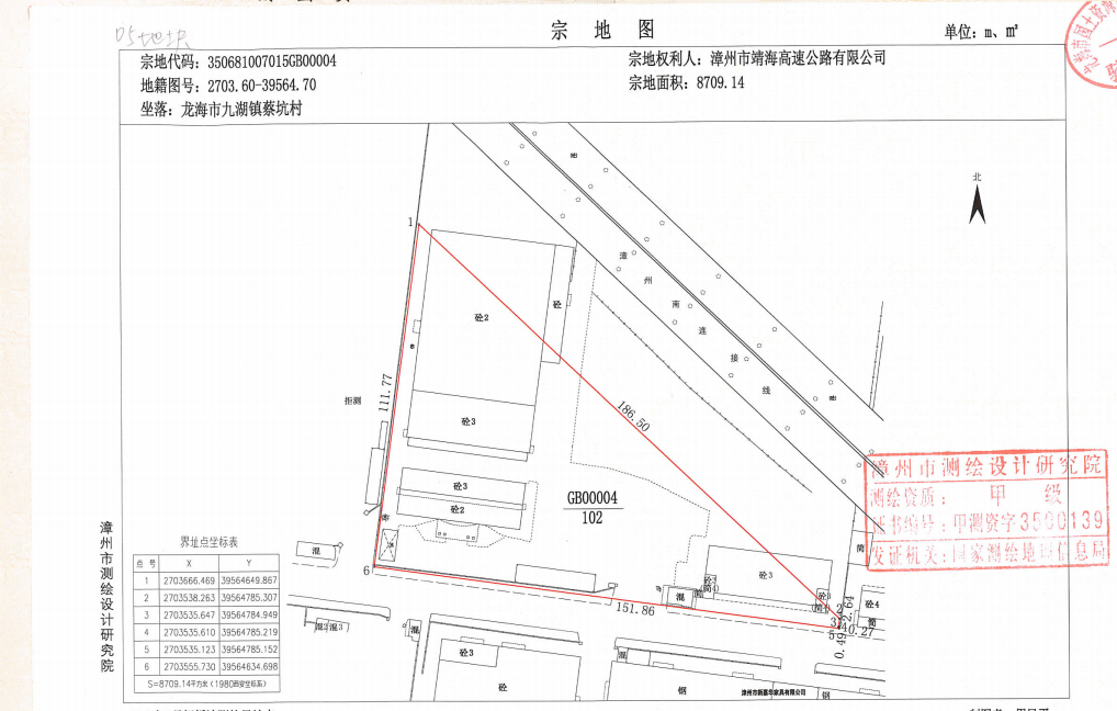 亚娱(中国)用地选址沈海高速龙海市九湖工业园区蔡坑村内,产权人为漳州市靖海高速公路有限公司,厂区内空地面积约19931㎡(约43亩),其中:高速公路以北约7276㎡(约10.9亩),高速公路以南约12655㎡(约19亩),原申荣家具厂空地8775㎡(约13.1亩)。建筑面积总7634㎡,其中:场地内设有1栋三层办公楼(占地面积约604㎡,总面积约1604㎡)、1栋三层宿舍楼共有40间宿舍及1间食堂(占地面积约688㎡,总面积约2030㎡)、生产厂房1座约4000㎡,具体详见下图。漳州市靖海高速公路有限公司已经取得该地块的国有土地使用权,该地块性质为划拨、用途为公路用地,南面与324国道相连,高速公路漳州南联络线从其中间穿过,距离漳州南收费站约700米,交通便捷,资源优势明显,符合亚娱(中国)开发的需求。