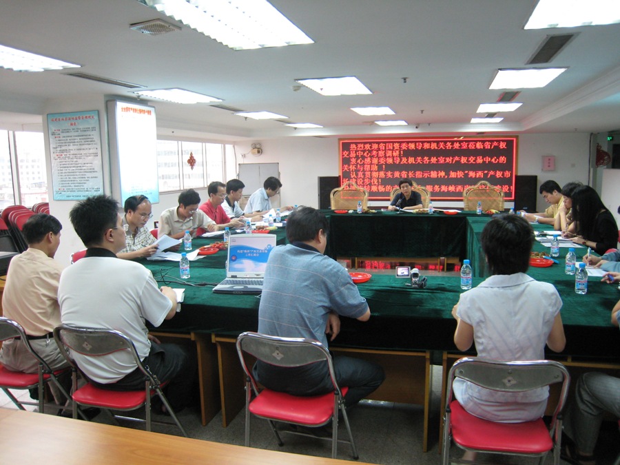 简讯:为贯彻落实全国产权交易工作会议精神和黄小晶省长关于整合全省市场资源,构建“海西”产权交易市场的批示,二OO七年五月三十日下午省国资委常务副主任吴炳清带领省国资委相关处室领导一行莅临省产权交易中心调研,专题研究部署如何加快海西产权交易市场建设步伐。会议充分肯定了省产权交易中心在前一阶段所做的工作,确定了下一阶段的工作重点,提出了要坚持“两条腿走路”的方针,既要积极争取社会各部门、各阶层的支持,更要立足国资部门既有的力量,脚踏实地,冷静分析,努力进取,加快“海西”产权市场构建步伐。