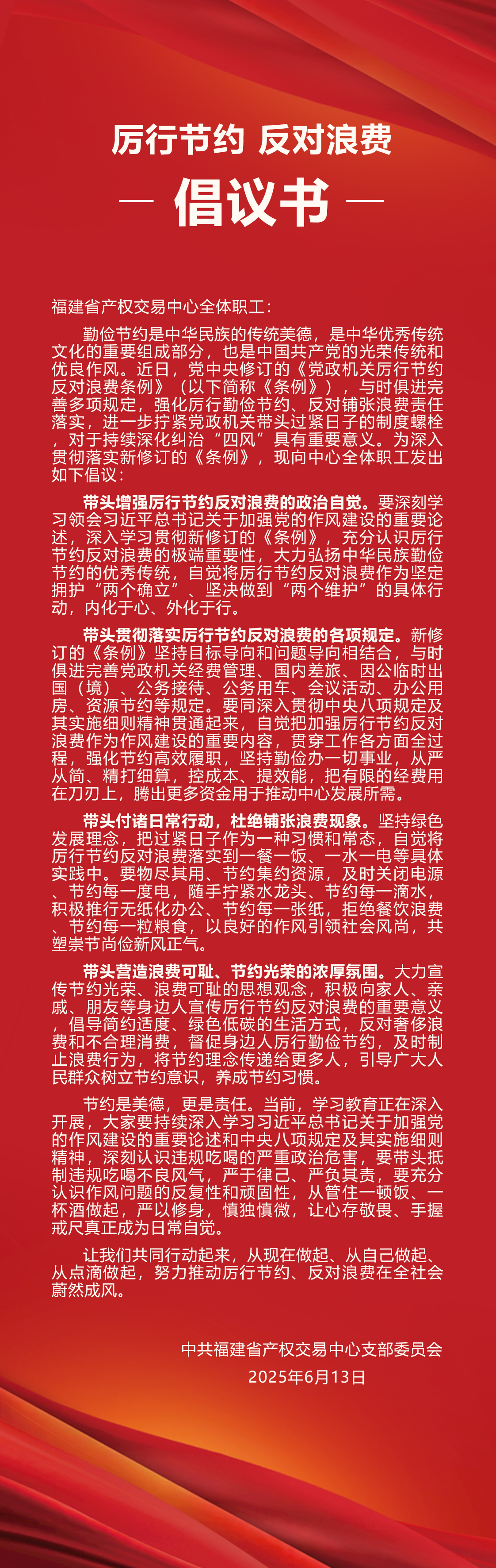 “厉行节约 反对浪费”倡议书