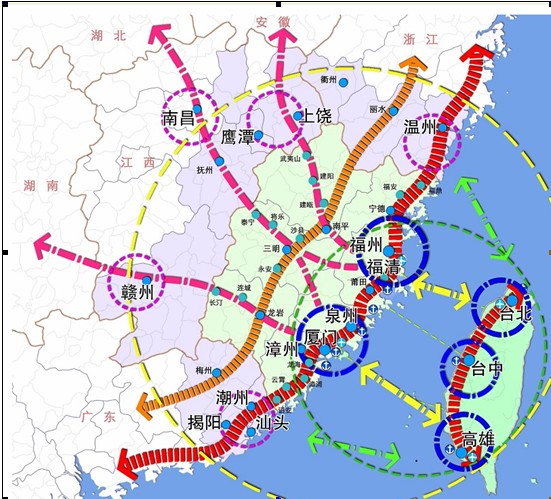 海峡两岸将形成两个半小时城际通勤圈 ●海峡城市群突破海峡西岸范畴,成为国际合作的重要窗口●构建“福州大都市区”和“厦泉漳组合大都市区” ●把平潭建设成为促进祖国和平统一的前沿平台