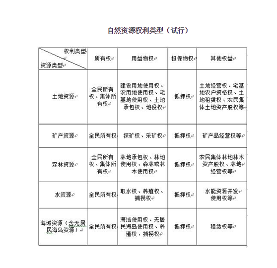 1.明确各类自然资源产权主体权利。根据《自然资源权利类型(试行)》(详见附件),对自然资源实行权利清单管理,明确各类自然资源产权主体在自然资源产权行使、开发利用和保护等方面享有的权利及依法应承担的责任。在符合法律规定及用途管制的前提下,保护自然资源使用权人的自主权,允许自然资源使用权人根据自然资源的具体情况进行合理开发利用,不得以任何行政手段干涉其合法生产经营活动。